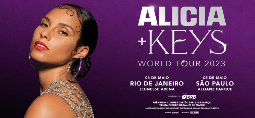No dia 3, a turnê mundial da artista chega no Rio de Janeiro, na Jeunesse Arena. Keys depois segue para São Paulo, e canta no Allianz Parque na sexta-feira, 5.