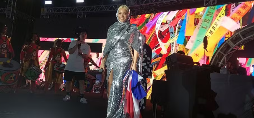 Beyoncé fez uma aparição surpresa em Salvador, nesta quinta-feira (21), para o lançamento de seu filme, “Renaissance: a film by Beyoncé”. Com uma roupa brilhante e enrolada na bandeira da Bahia, a cantora subiu no palco do Centro de Convenções, durante o evento de pré-estreia, na capital baiana.