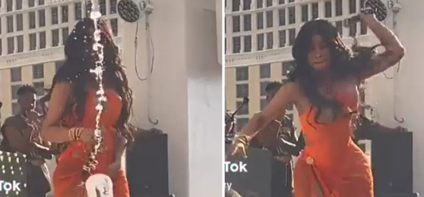 A artista ficou bastante molhada com o objeto lançado em sua direção. Porém, diferente do que outros artistas fizeram, Cardi B partiu para um contra ataque.