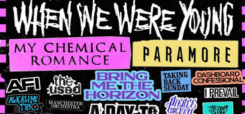 Las Vegas receberá um festival que fará a alegria de quem ouvia bandas do chamado emo, mas não só, no início do século 21. o When We Were Young, não esconde seu caráter nostálgico a começar pelo seu nome (“Quando Éramos Jovens”) e a escalação com uma grande parte dos maiores nomes daquela cena, a começar pelos headliners My Chemical Romance e Paramore. Com mais de 60 atrações, e apenas um dia, 22 de outubro, o WWWY certamente irá deixar o público que gosta de ficar circulando entre palcos para ver suas atrações favoritas bem cansado.
