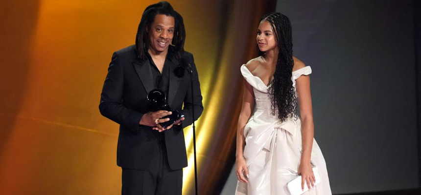 Jay-Z, que estava no palco acompanhado pela filha Blue Ivy Carter, celebrou outros nomes do hip hop e falou sobre a importância de pessoas pretas, mesmo não vencendo, continuarem ocupando espaços de destaque.