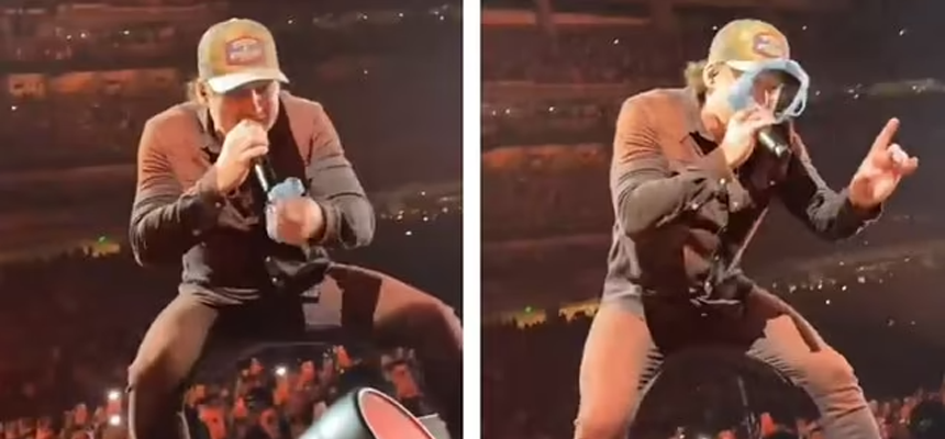 Em um vídeo do concerto, Morgan Wallen aparece sendo atingido no rosto, pegando a calcinha e a jogando rapidamente de volta para o público.